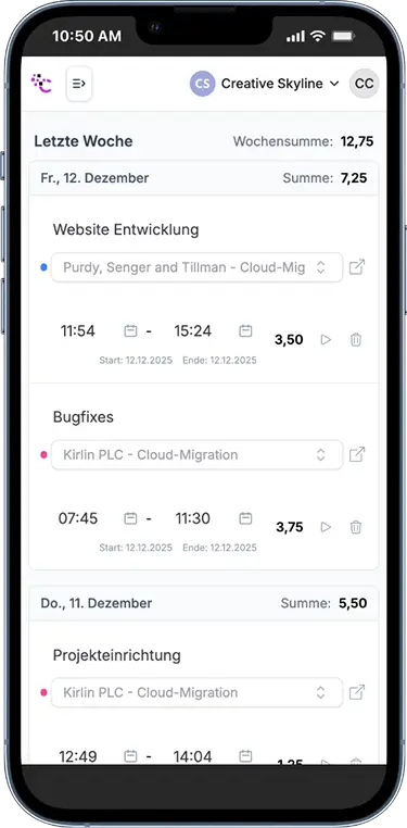 Hier bekommst du einen ersten Einblick in unsere eigenen Produkte - von übersichtlicher Zeiterfassung über smarte Aufgabenorganisation bis hin zu KI-gestützter Automatisierung. Das ist nur ein Auszug dessen, was möglich ist - gern entwickeln wir auch die passende Lösung für dein Business.