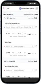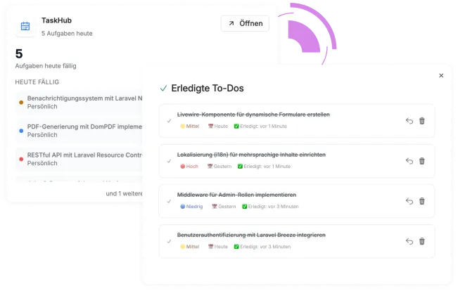 Hier bekommst du einen ersten Einblick in unsere eigenen Produkte - von übersichtlicher Zeiterfassung über smarte Aufgabenorganisation bis hin zu KI-gestützter Automatisierung. Das ist nur ein Auszug dessen, was möglich ist - gern entwickeln wir auch die passende Lösung für dein Business.