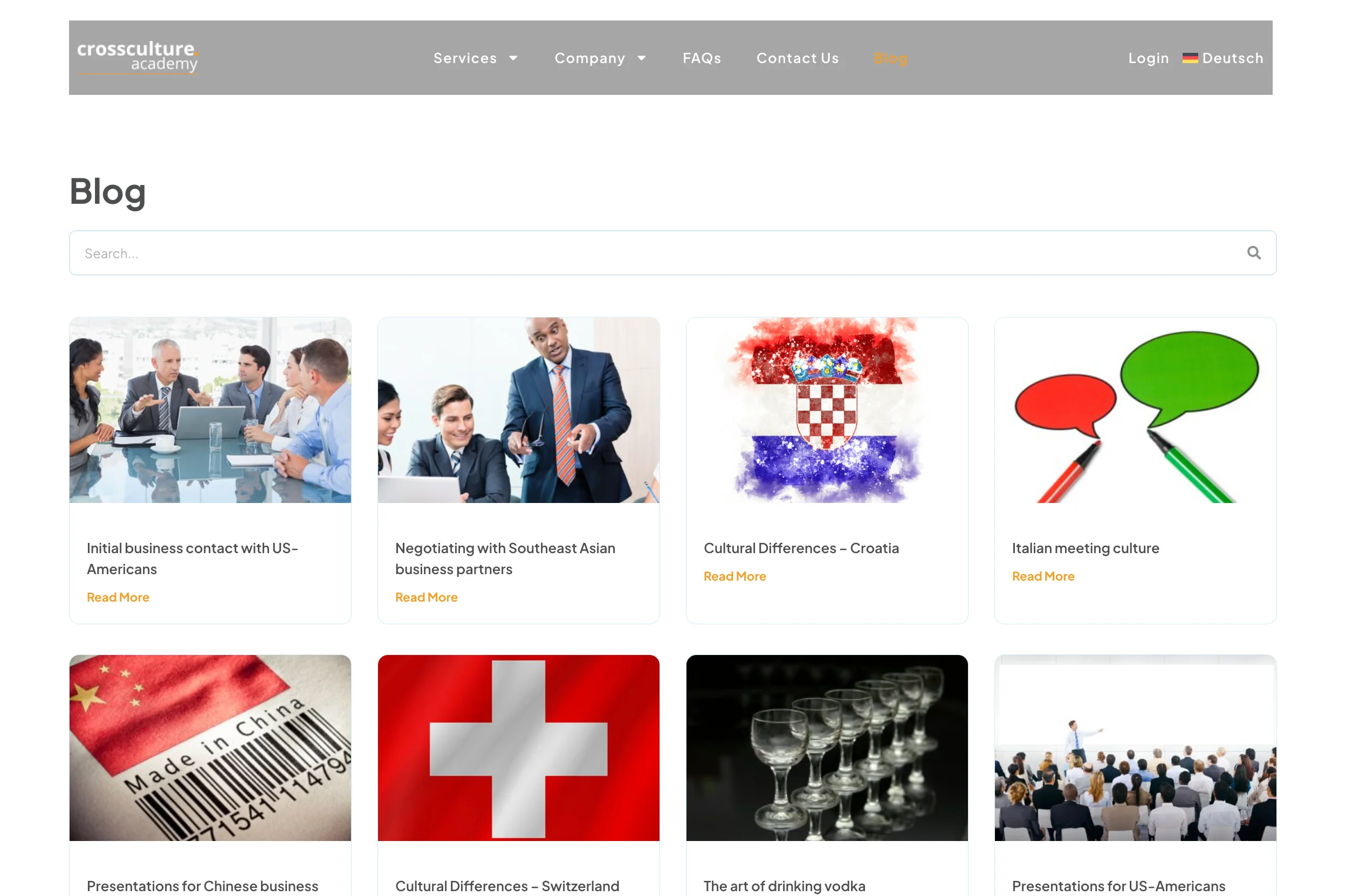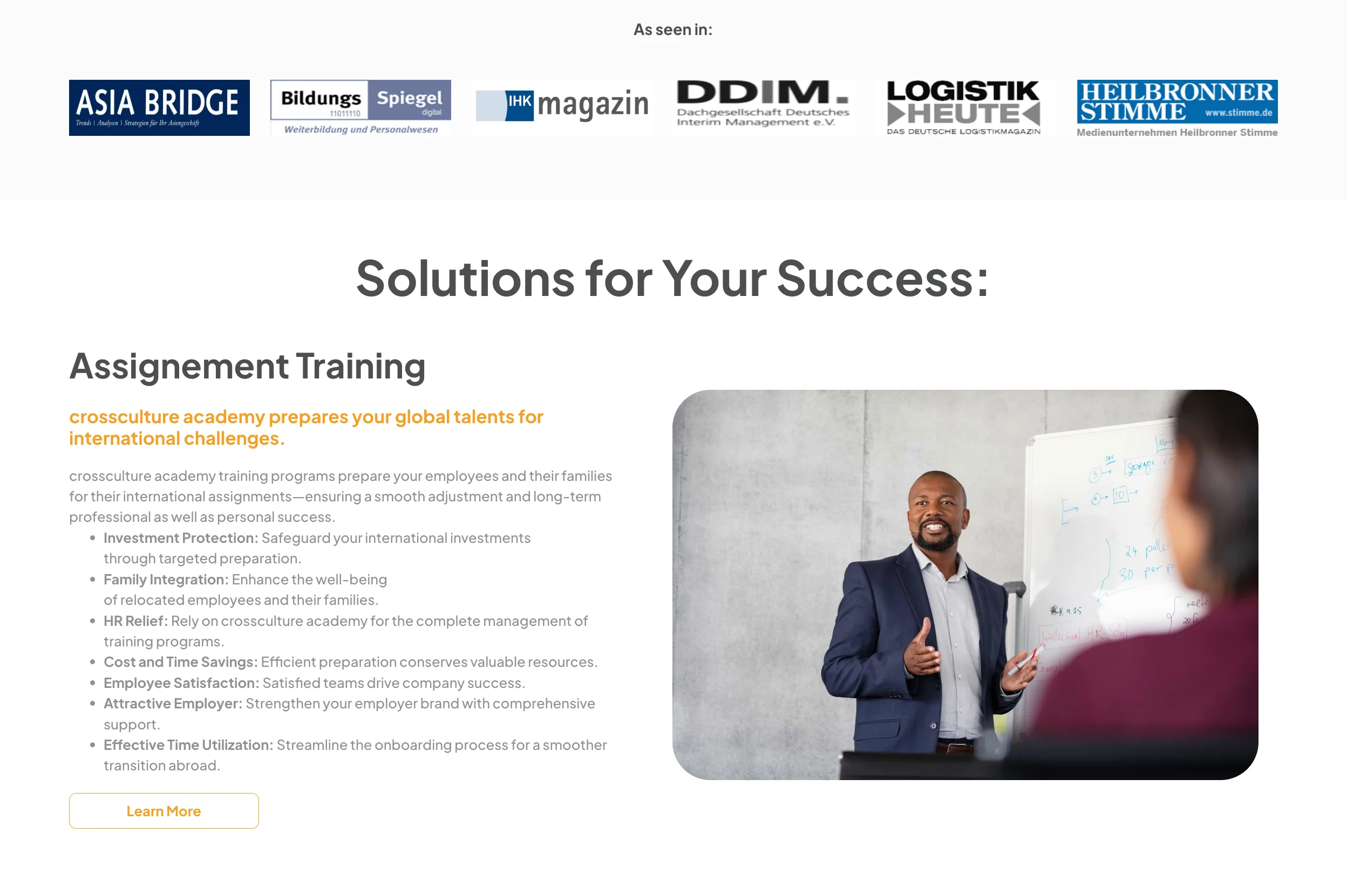 Die Crossculture Academy verfügt über jahrelange Erfahrung in interkultureller Beratung. Das Team trainiert Fach- und Führungskräfte für die Herausforderungen des internationalen Business - von Kommunikationsstilen über Geschäftspraktiken bis hin zu kulturspezifischen Handlungsempfehlungen. Was fehlte, war eine Online-Präsenz, die diese Expertise sichtbar macht.